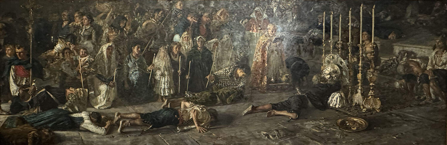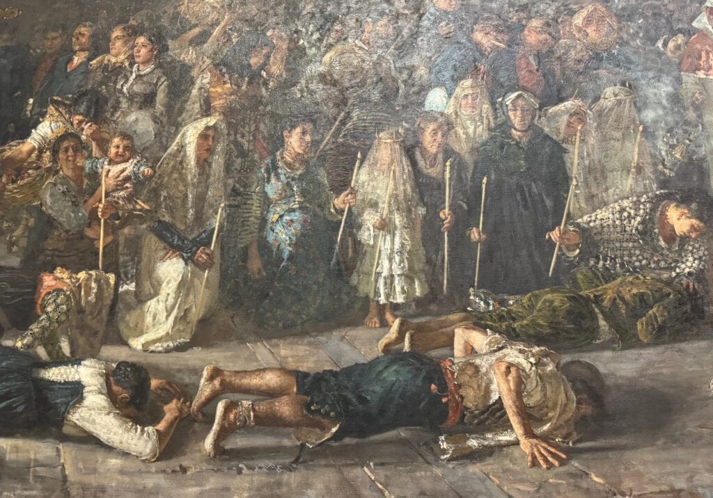 Origins: Michetti painted this between 1881 and 1883, inspired by the feast of San Pantaleone in Miglianico. He used a magnesium flash to photograph the crowd, which shocked the locals. When a hailstorm hit right after, it almost caused a riot.
