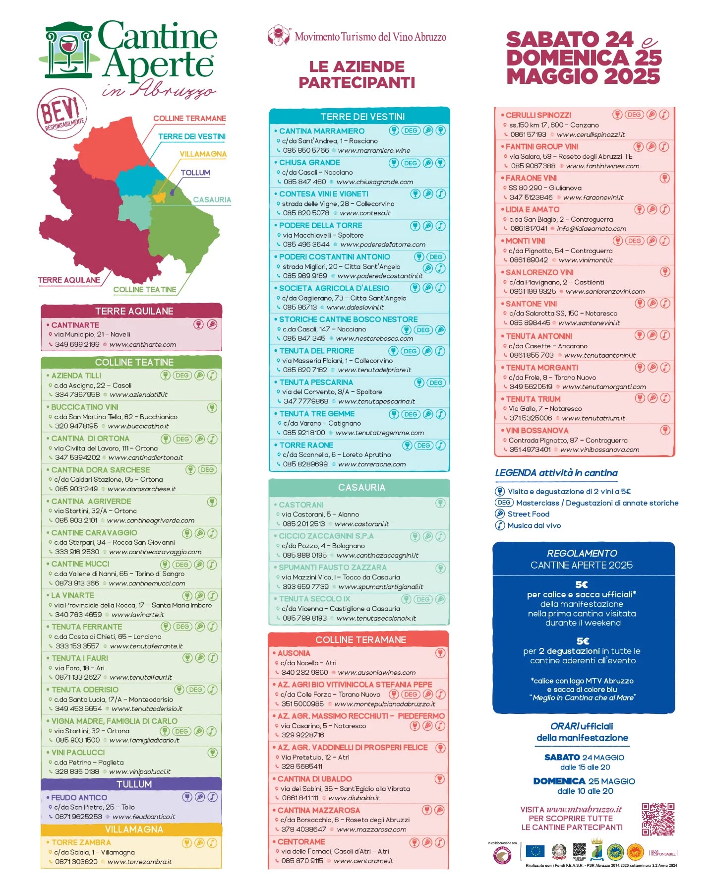 Here are the 2025 ‘Cantine Aperte’ in Teramo, Pescara, L’Aquila and Chieti and interactive map