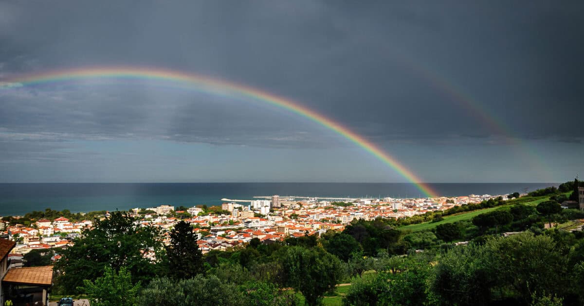 Roseto degli Abruzzi (Teramo). A proper Adriatic beach town, known for its Bandiera Blu coast, rose-lined seafront, and easy rail connections north and south. The population is around 24,000.
