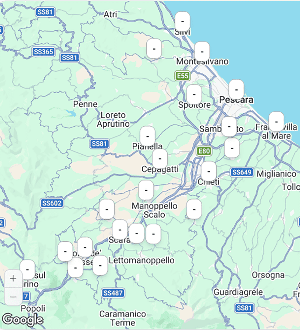 22 comuni across the provinces of Pescara (16), Chieti (5) and Teramo (1), affecting around 275,000 people