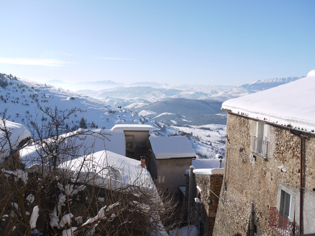 Calascio is a traditional Italian village set in a splendid Apenine location in the region of Abruzzo. Surrounded by mountains and with centuries-old stone houses and postcard views everywhere you look, the village is an all-year destination benefiting from impressive changes in seasonal weather, experiencing both luxurious summer sunshine and tranquil winter snow.