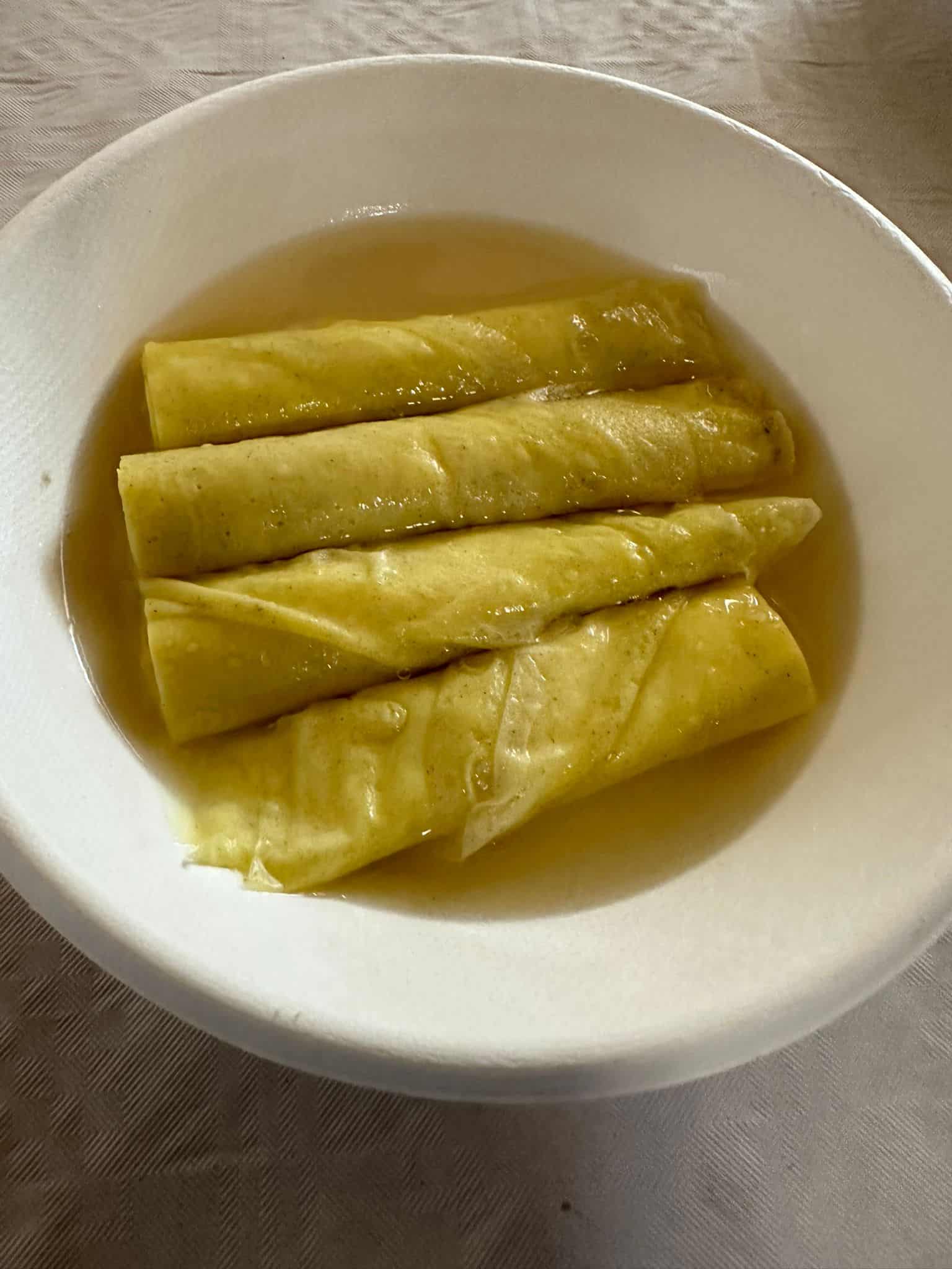 - Ladle the brodo over the scrippelle and serve.